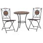Add a romantic touch to your garden, patio, or balcony with this mosaic bistro set. It will be a great pleasure to chat with your friends or have a cuppa while relaxing on this decorative yet functional garden furniture set. Thanks to its strong powder-coated iron frame and ceramic tiles, our table and chairs are sturdy, durable, and easy to clean. Delivery includes 1 table and 2 chairs.