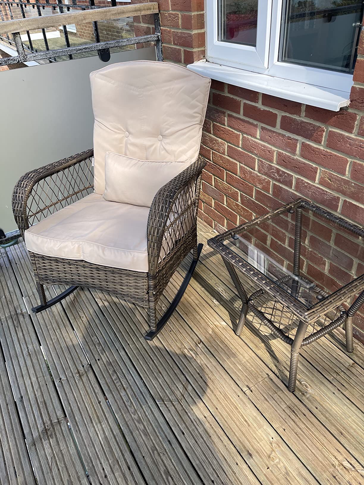 3 Piece Outdoor Rocking Chair Set with Cozy Cushions and Pillow-Beige