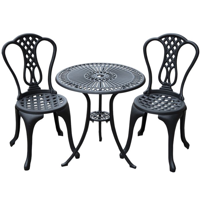 3 Piece Patio Cast Aluminium Bistro Set Garden Outdoor Furniture Table and Chairs Shabby Chic Style