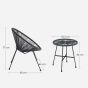 Material: PE (Polyethylene), Powder-Coated Steel, Tempered Glass- Table Size: 50 x 52 cm (Dia. x H)- Single Chair Size: 64 x 65 x 77 cm (L x W x H)- Table