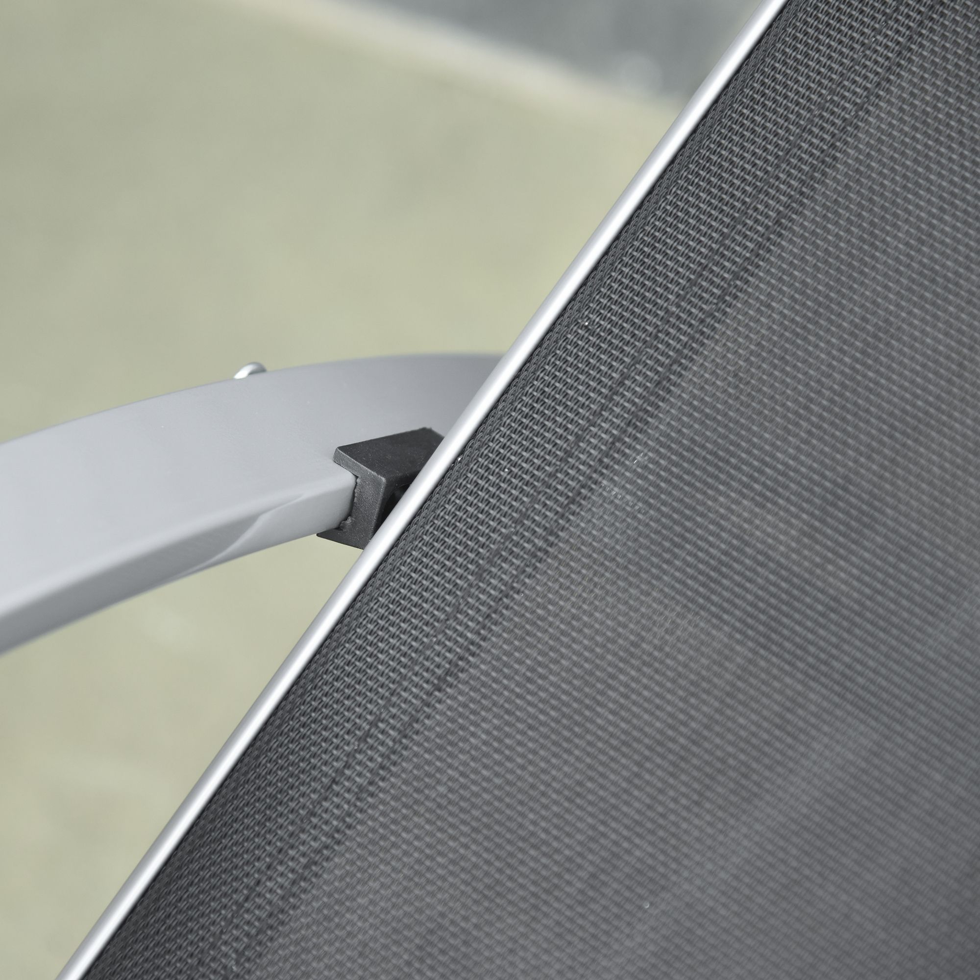 Refresh your outdoor space with the garden recliner chairs set of 3. Using metal for the frame of both chairs and a table, the structure is tough and durable, so it can be used every day. The sun loungers for garden are wrapped in breathable mesh for comfort and smoothness on the skin. The table comes with a thick glass top for a safe and secure holding place. Stylish and functional, this set is perfect for patios, gardens, balconies and any other outdoor space. Assembly is required.