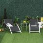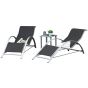 3 Pieces Lounge Chair Set Garden Outdoor Recliner Sunbathing Chair with Table, Black