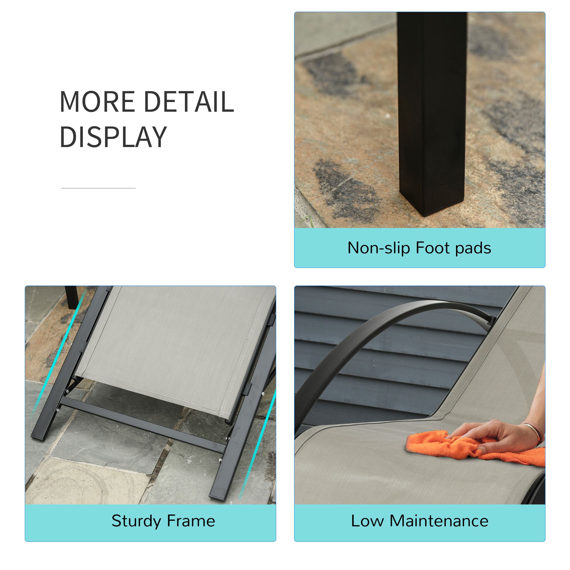 3 Pieces Lounge Chair Set Garden Outdoor Recliner Sunbathing Chair with Table, Grey