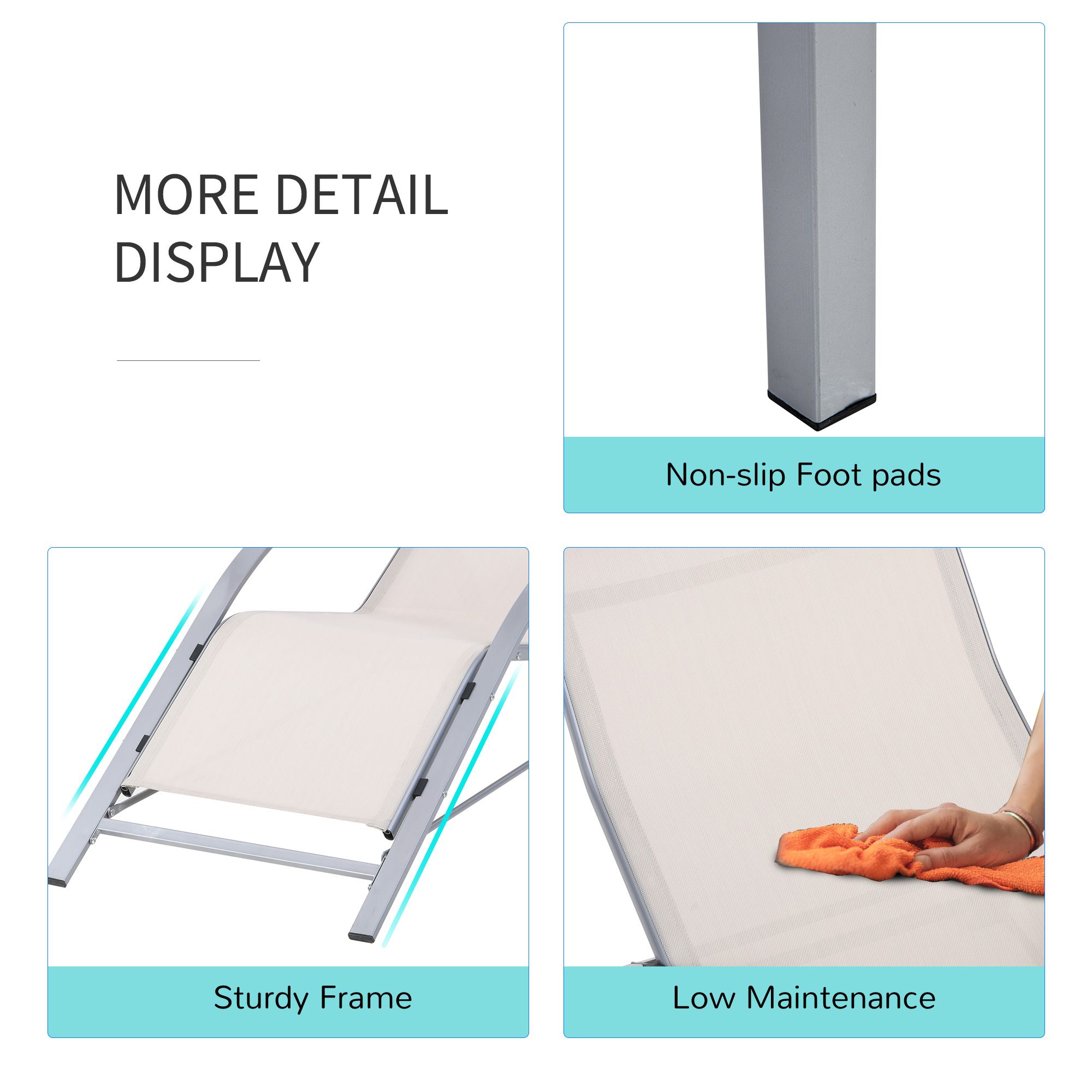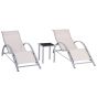 3 Pieces Lounge Chair Set Metal Frame Garden Outdoor Recliner Sunbathing Chair with Table, Cream