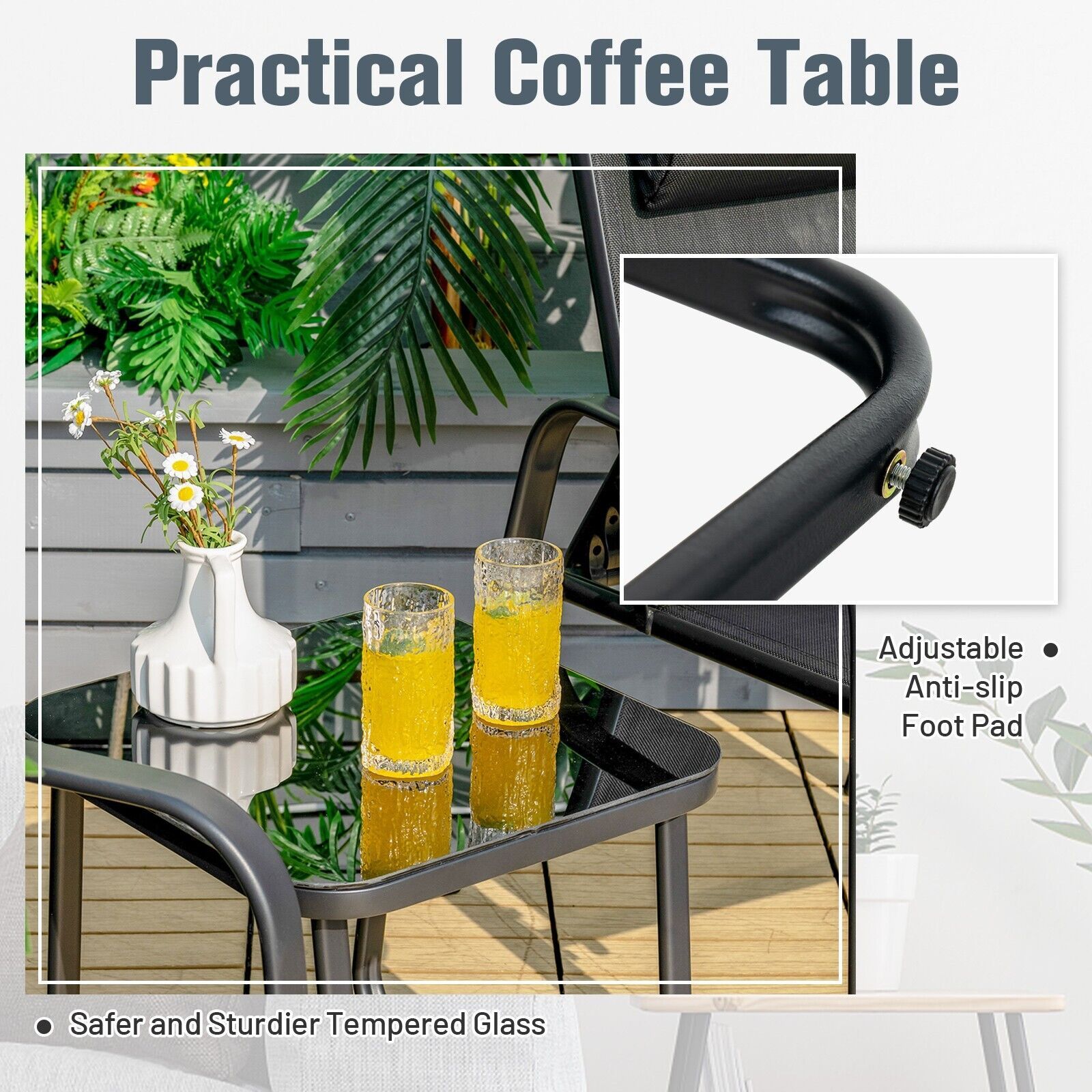 3 Pieces Patio Bistro Set with Coffee Table and 2 Stackable Chairs-Black