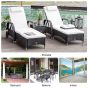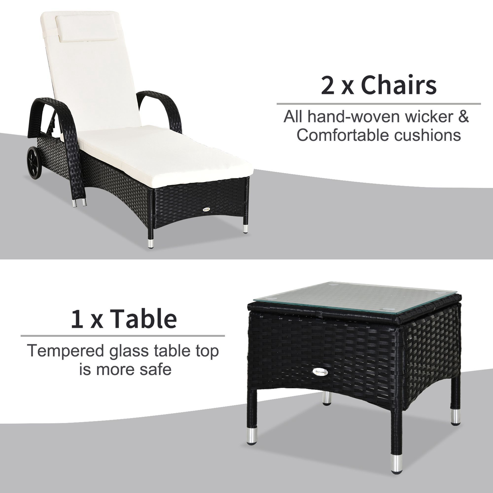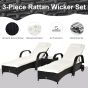 3 Pieces Patio Lounge Chair Set Garden Wicker Wheeling Recliner Outdoor Daybed, PE Rattan Lounge Chairs w/ Cushions & Side Coffee Table Black