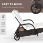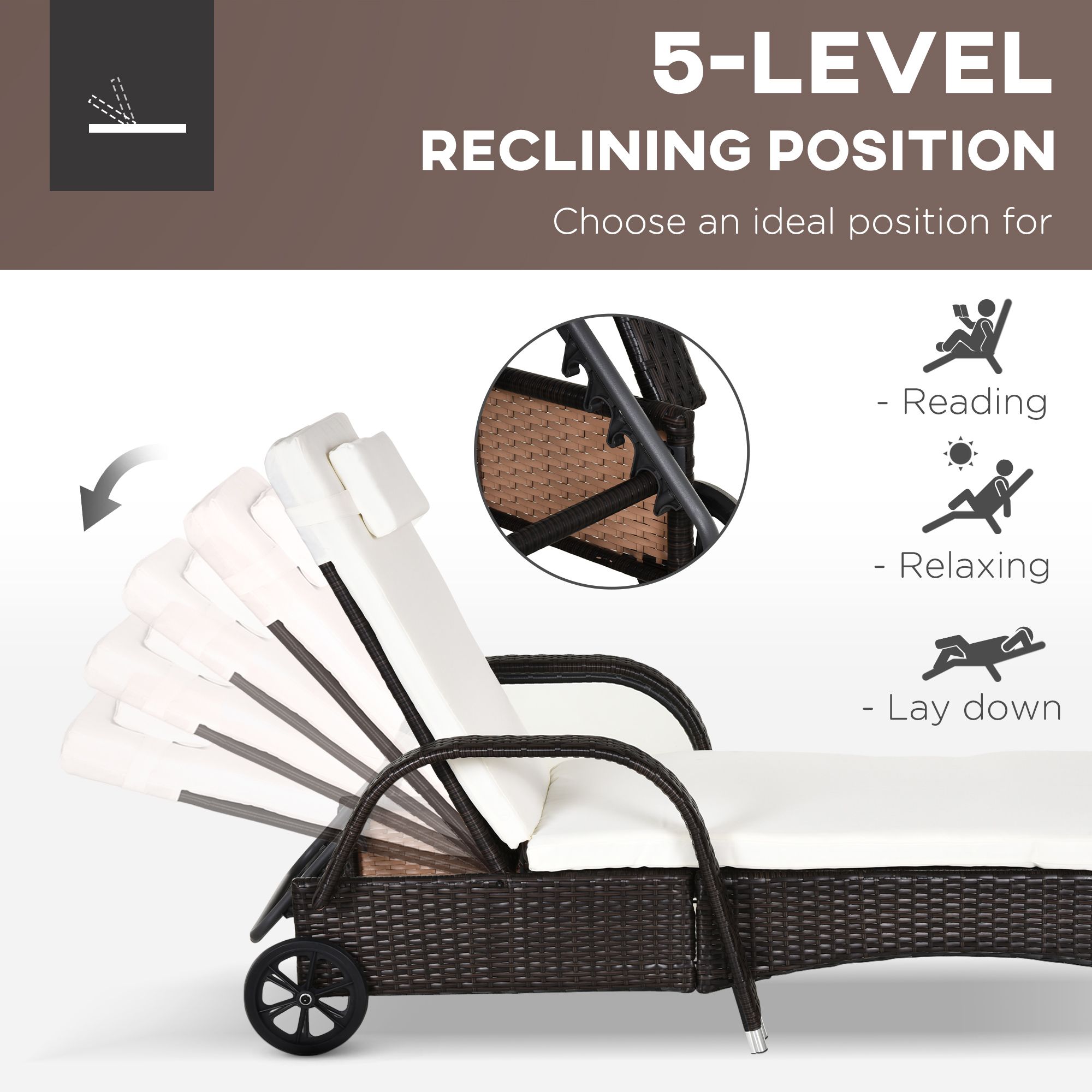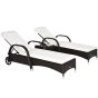 3 Pieces Patio Lounge Chair Set, Garden Wicker Wheeling Recliner Outdoor Daybed, PE Rattan Lounge Chairs w/Cushions & Side Coffee Table Brown