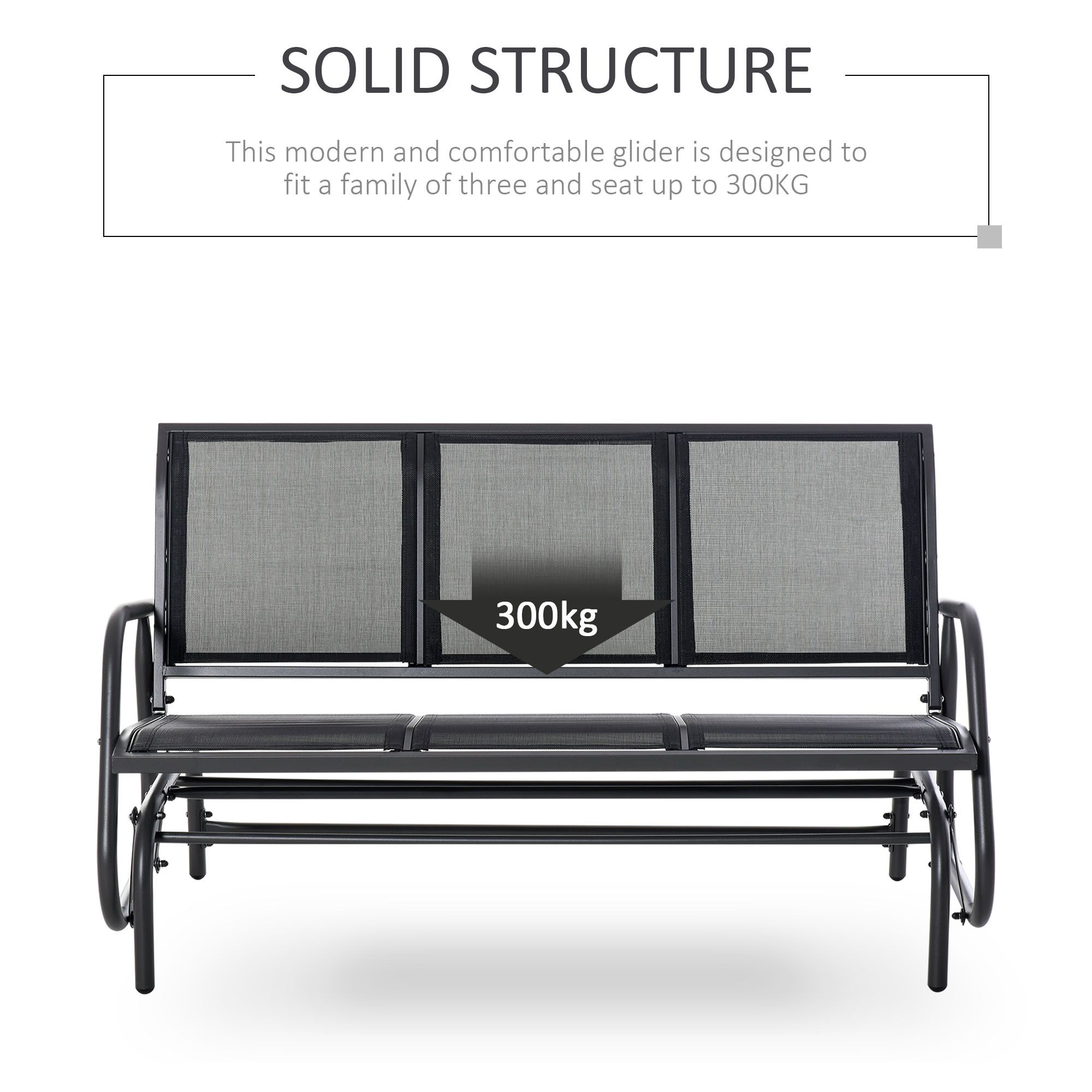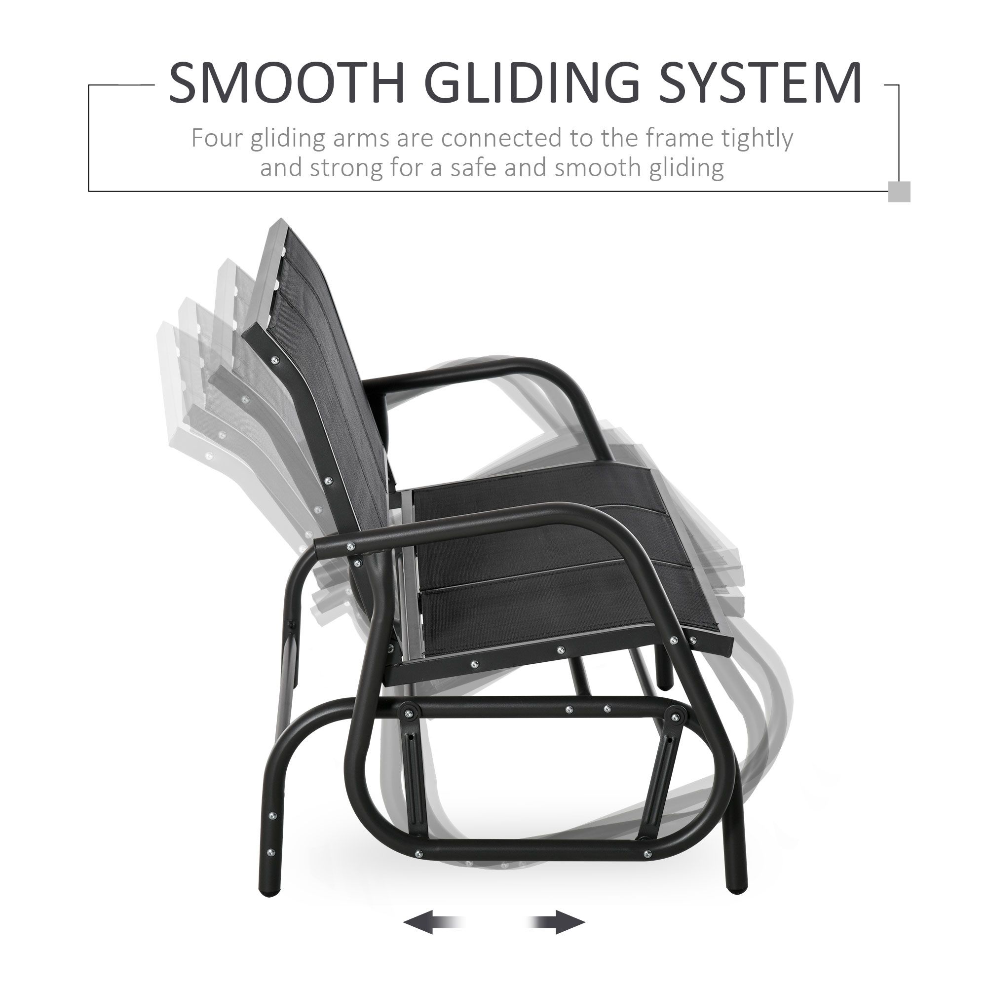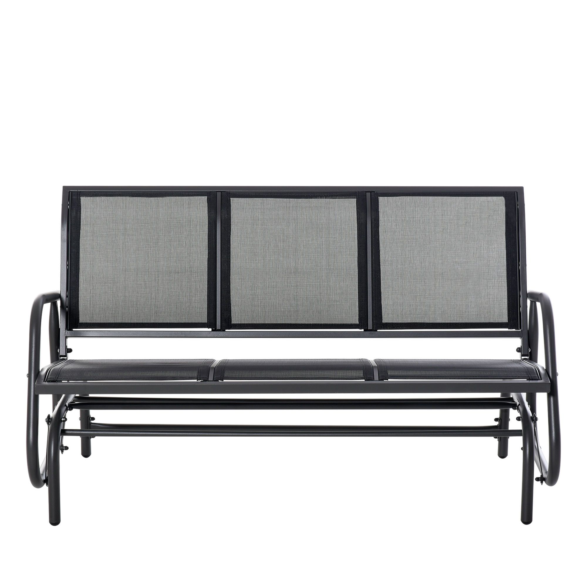 Unwind outdoors the effortlessly smooth way with this gliding bench from. Using powder coated metal for a strong and durable frame, it is covered with mesh fabric for a breathable seat and back. Curved back and armrests support your body. The frame is securely attached to the base, letting it rock back and forth smoothly for an enjoyable experience every time.