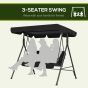 3-Seat Swing Chair Garden Swing Seat with Adjustable Canopy for Patio, Black