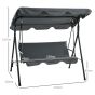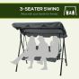 3-Seat Swing Chair Garden Swing Seat with Adjustable Canopy for Patio, Grey