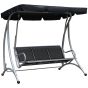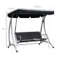 3 Seater Bench Steel Outdoor Patio Porch Swing Chair with Adjustable Canopy - Black