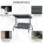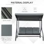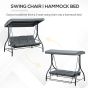 3 Seater Canopy Swing Chair, 2 in 1 Garden Swing Seat Bed, with Adjustable Canopy and Metal Frame, Dark Grey