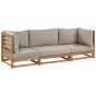This garden sofa features modular elements that can be set together or used as separate seats. Made from certified acacia in a beautiful, light wood tone, it is perfect for outdoor lounging areas, and it's easy to clean. With the thickly padded seat and backrest cushions, in a taupe shade, combined with a comfortable, low-design frame, this is the perfect focal point for any modern garden or patio. Details: Color: Light Wood, Grey, Beige. Main material: FSC® Certified Acacia Wood. Additional material: Polyester. Material Composition: 100% Polyester Weight: 36 Capacity: 3 People Assembly: Full Assembly Required Wood type: Acacia mangium Wood Origin: Vietnam Weight Capacity: 480 Cushions Dimensions: 74x84x12/83x42x12 Legs Height: 20 Padding Thickness: 12 Seat Height: 32