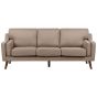 Elegant sofa, fully upholstered in high-quality fabric, pleasant to the touch. Thickly padded cushions and double armrests guarantee pleasant sitting. The mid-century design highlighted by slanted oak wood legs matches all modern and traditional interiors. It works well combined with matching sofa from the same collection, but can also work as a part of eclectic arrangement with various armchairs and couches. Details: Color: Brown, Light Wood. Main material: Polyester. Additional material: Oak Wood, Solid Wood. Material Composition: 100% Polyester Weight: 45 Capacity: 3 People Assembly: Full Assembly Required Wood type: Eucalyptus deglupta, Quercus mongolica Wood Origin: China Cushions Dimensions: 63/51x46 Legs Height: 18 Padding Thickness: 11 Seat Height: 39
