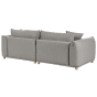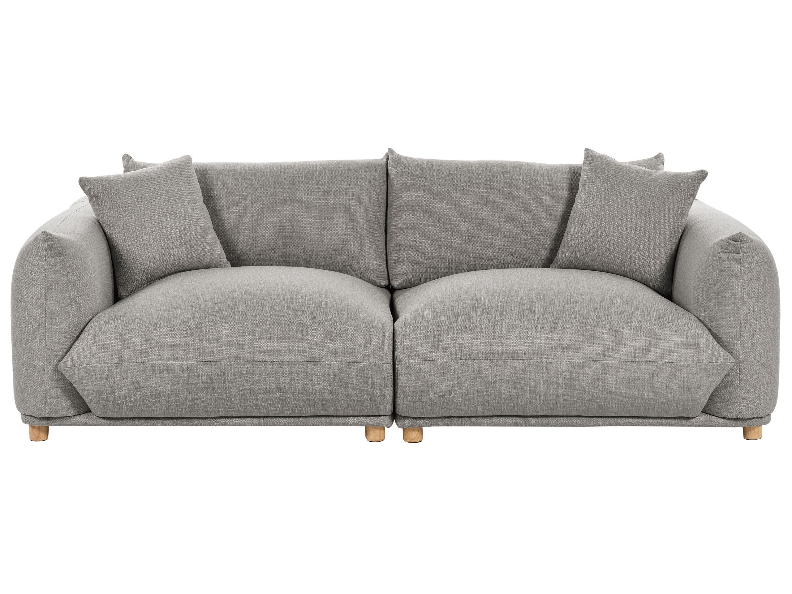 Elevate your living room with a fusion of contemporary style and comfort. Upholstered in durable polyester fabric, in an elegant light shade of grey, this sofa exudes sophistication while offering a cosy retreat. Its short, stable rubber wood legs provide a sturdy base, accentuating the deep, wide seat that beckons you to unwind. The included scatter cushions, in matching fabric, enhance both the aesthetic and comfort, inviting you to a luxurious lounging experience. Let yourself sink into the plush cushions and feel the stress of the day melt away. Details: Color: Grey, Light Wood. Main material: Polyester. Additional material: Plywood, Eucalyptus Wood, Rubberwood. Material Composition: 100% Polyester Weight: 60 Capacity: 3 People Assembly: Legs to be Fitted Wood type: Eucalyptus grandis Wood Origin: China Cushions Dimensions: 37x37 Legs Height: 3 Padding Thickness: 16 Seat Height: 45