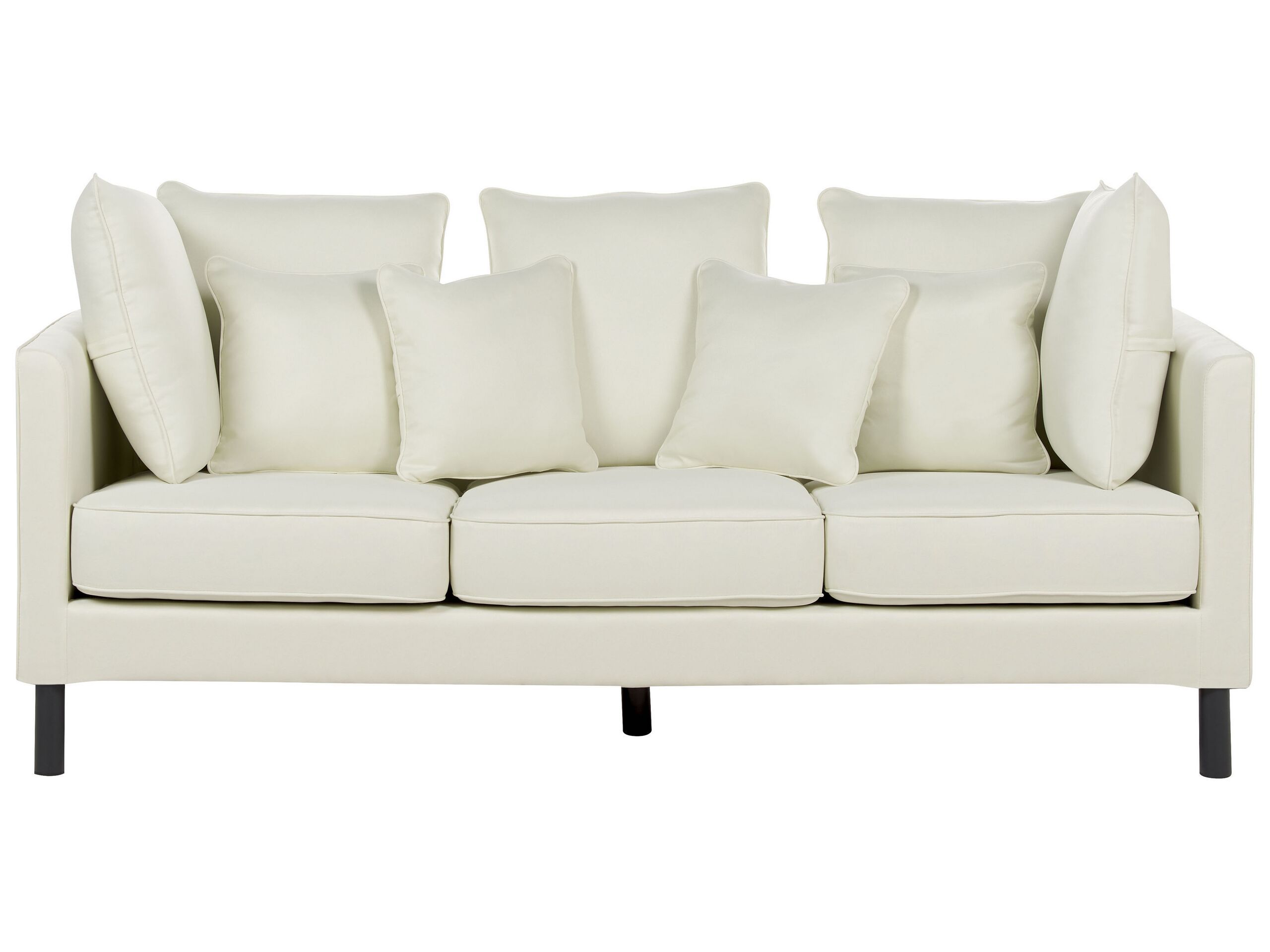 This vintage inspired sofa is a dream come true for any 50’s furniture style lovers. It makes an eye-catching centrepiece, offers ultimate comfort, and can be easily integrated into any interior. Featuring multiple loose pillows on the back, it creates the perfect spot to cuddle up and enjoy an evening. The sofa's stable legs are made of durable metal. Details: Color: White, Black. Main material: Polyester. Additional material: Eucalyptus Wood, Metal. Material Composition: 100% Polyester Weight: 47 Capacity: 3 People Assembly: Legs to be Fitted Wood type: Quercus mongolica, Eucalypteae Wood Origin: China Cushions Dimensions: 40x40 Legs Height: 16 Padding Thickness: 15 Seat Height: 43
