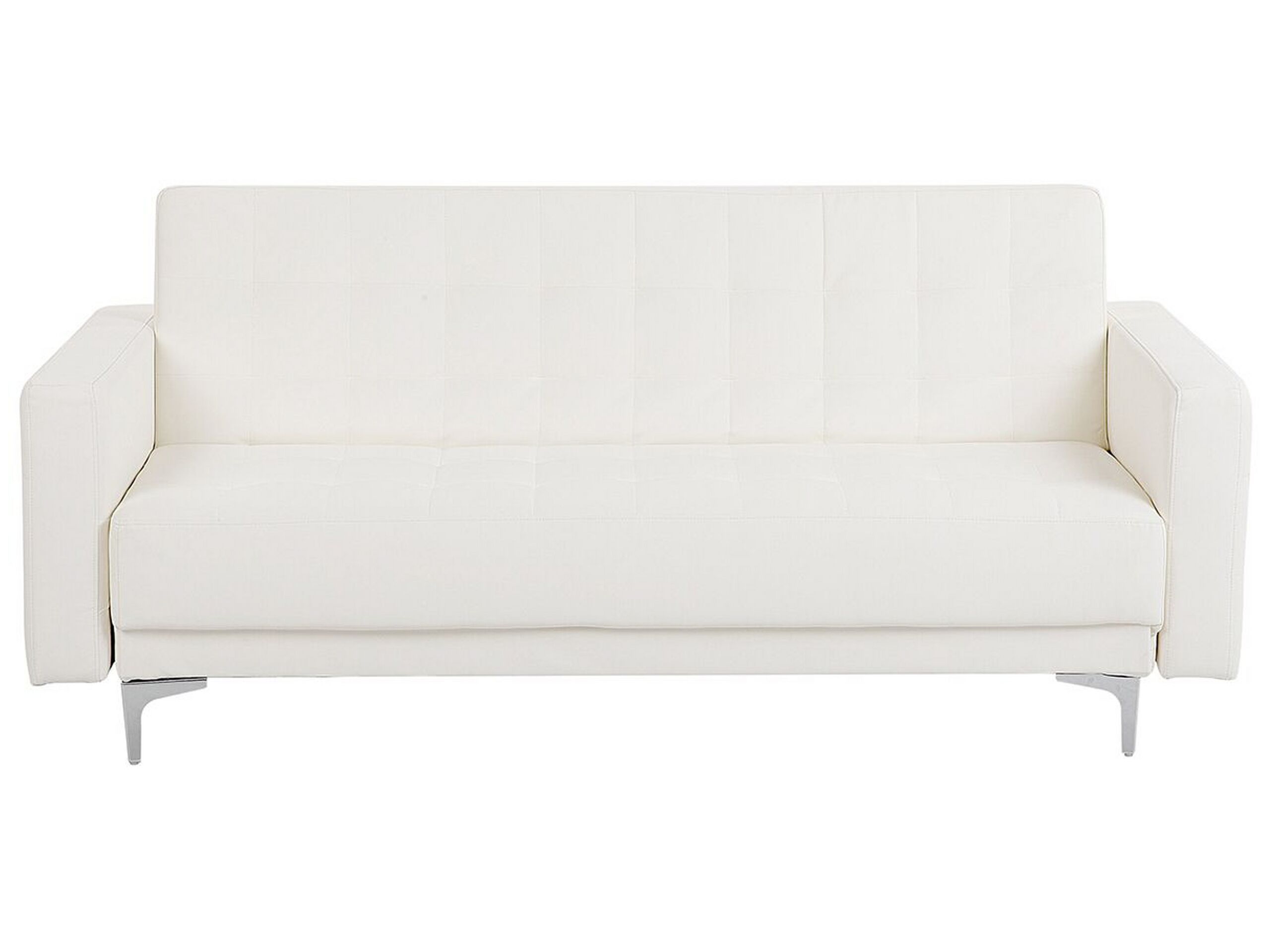 3 Seater Faux Leather Sofa Bed White ABERDEEN