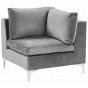 Bring home a modular sofa that will allow you to adjust your seating arrangement any time you want. With two corner sections and a 1-seat module you can create a piece of furniture that completely suits your living area. Position the ottoman on one end to extend the corner or use it as a footstool. Each element comes with thickly filled cushions encased in sumptuous velvet upholstery. Paired with glossy metal, silver legs for a clean, contemporary look this sofa will make a splendid centrepiece. Details: Color: Grey. Main material: Velvet. Additional material: Metal, Eucalyptus Wood. Material Composition: 100% Polyester Weight: 66 Capacity: 3 People Assembly: Partial Assembly Required Wood type: Eucalyptus grandis Wood Origin: China Cushions Dimensions: 69x35 Legs Height: 15 Padding Thickness: 16 Ottoman Dimensions: 85x85x48 Seat Height: 48