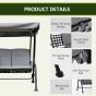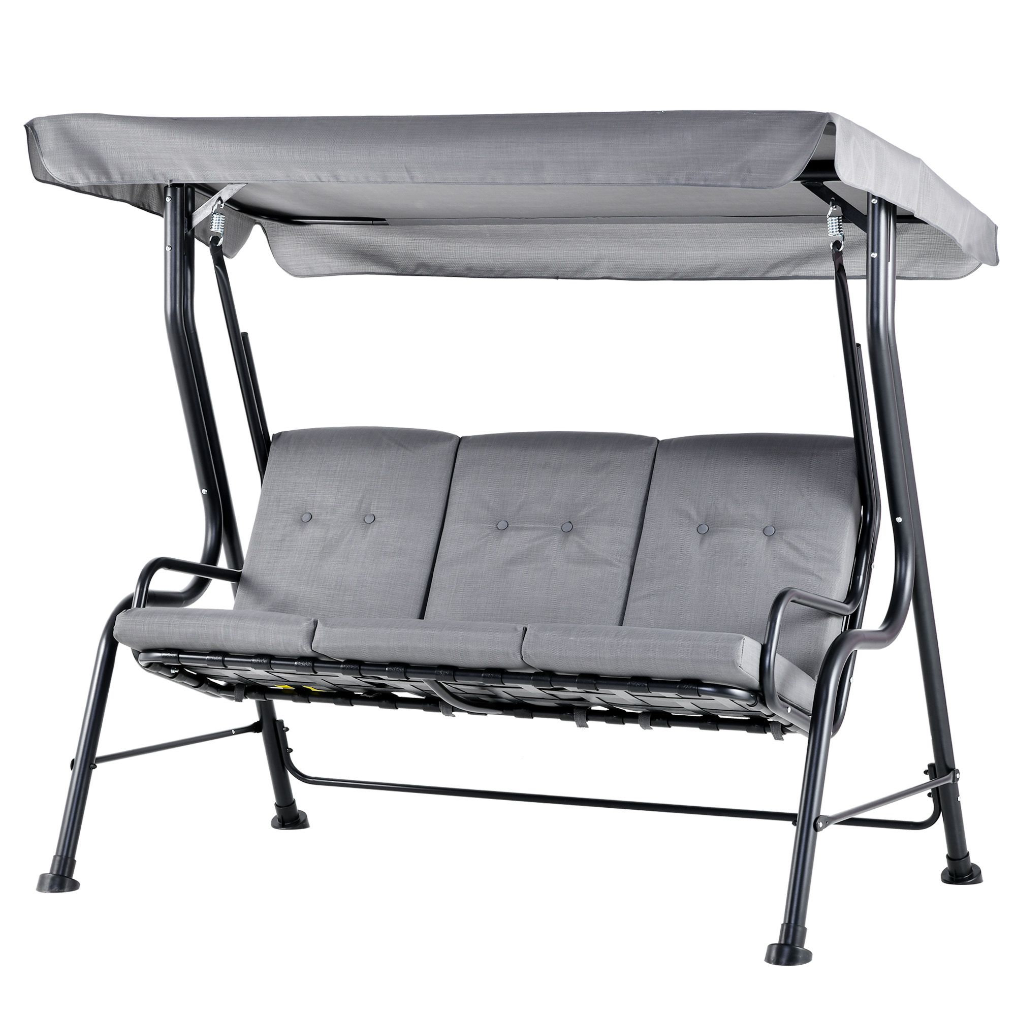 3 Seater Outdoor Garden Swing Chairs Thick Padded Seat Hammock Canopy Porch Patio Bench Bed - Grey