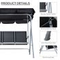3 Seater Patio Swing Chair Garden Hammock Bench Rock Shelter Shade Metal Black