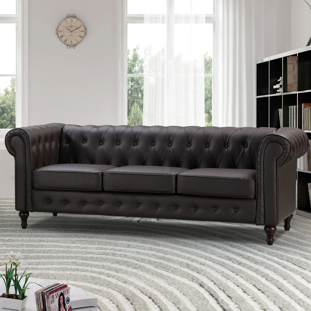 3 Seater Sofa - BELFORIA Leather Chesterfield Sofa - Brown