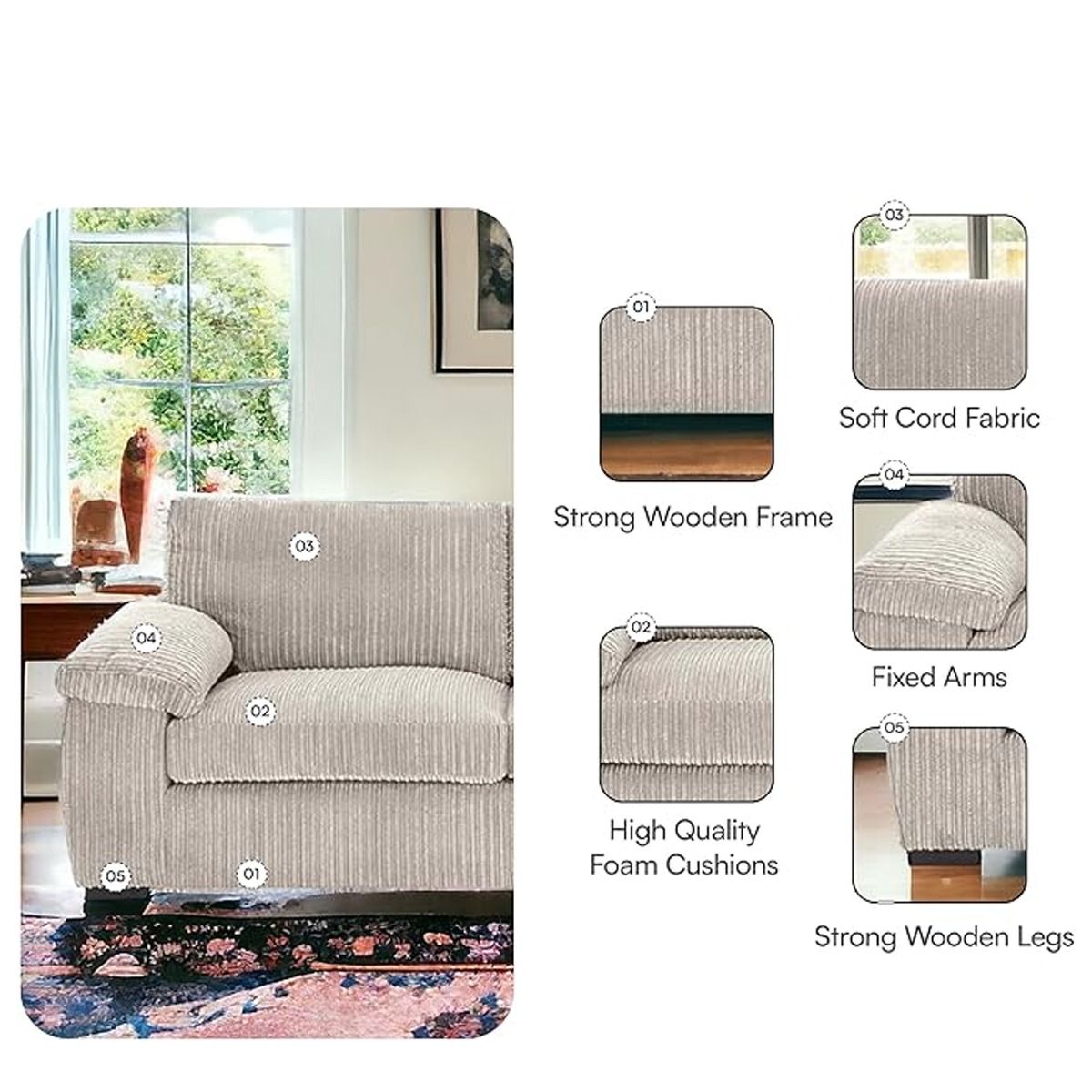 Material: Corduroy, Birch Wood