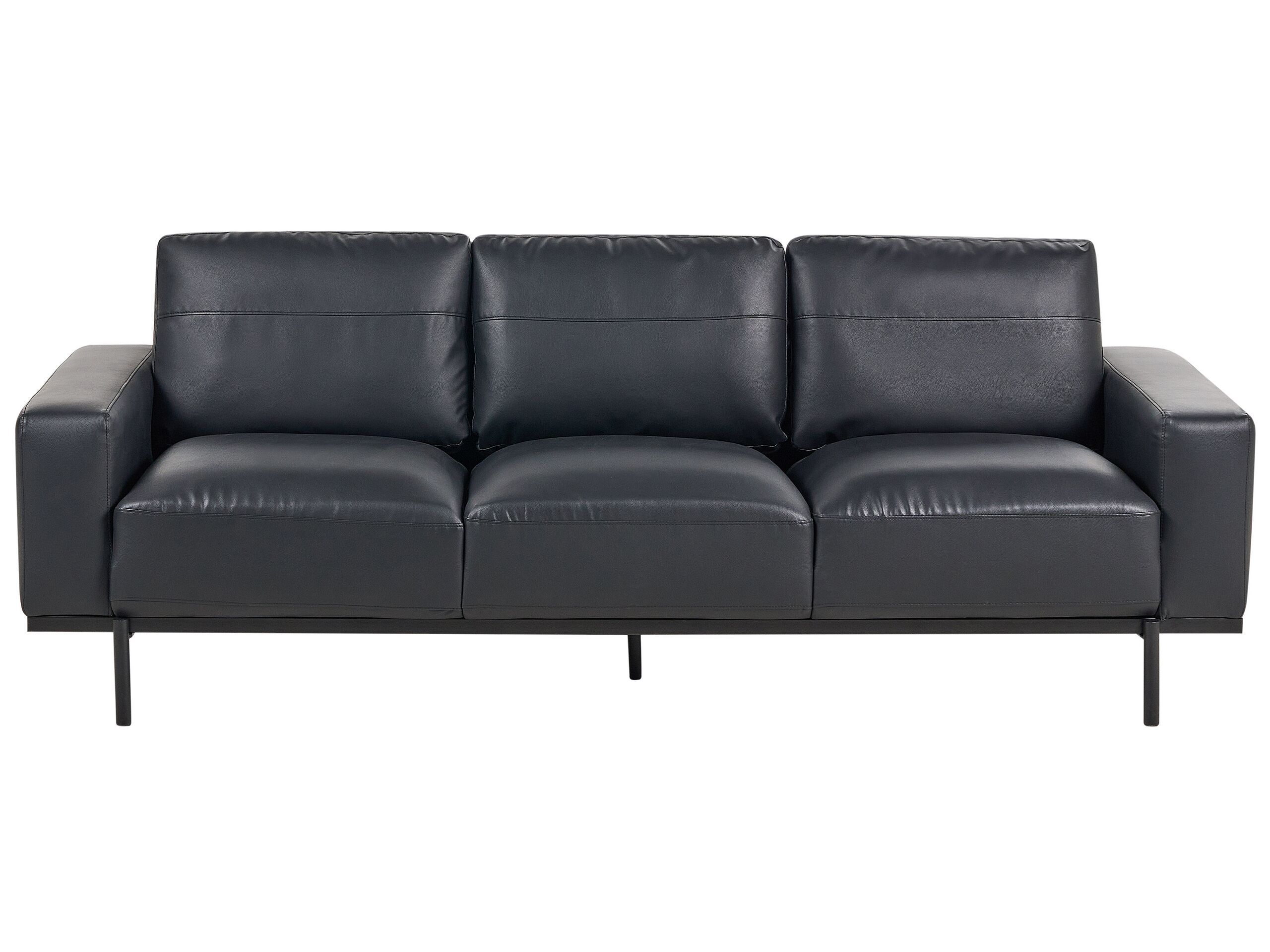 3 Seater Sofa Faux Leather Black SOVIK
