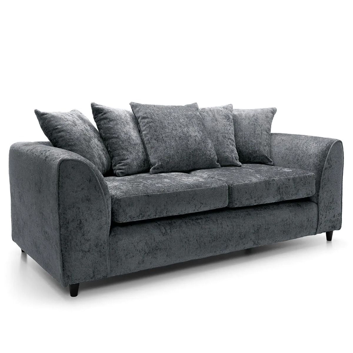 3 Seater Sofa - HENRY Crushed Chenille Fabric Sofa - Dark Grey