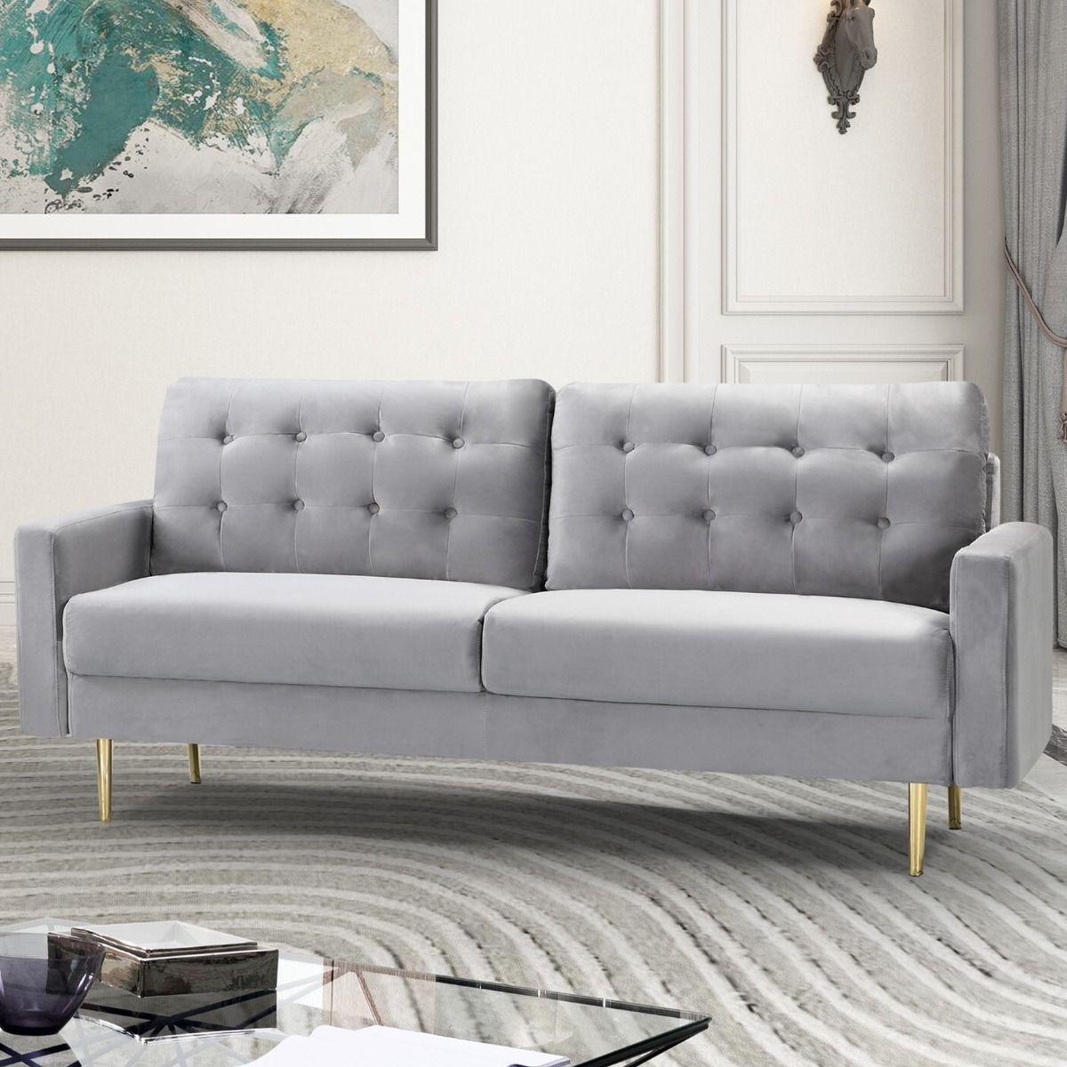 3 Seater Sofa - VAREZZO Fabric Sofa with Metal Legs - Grey