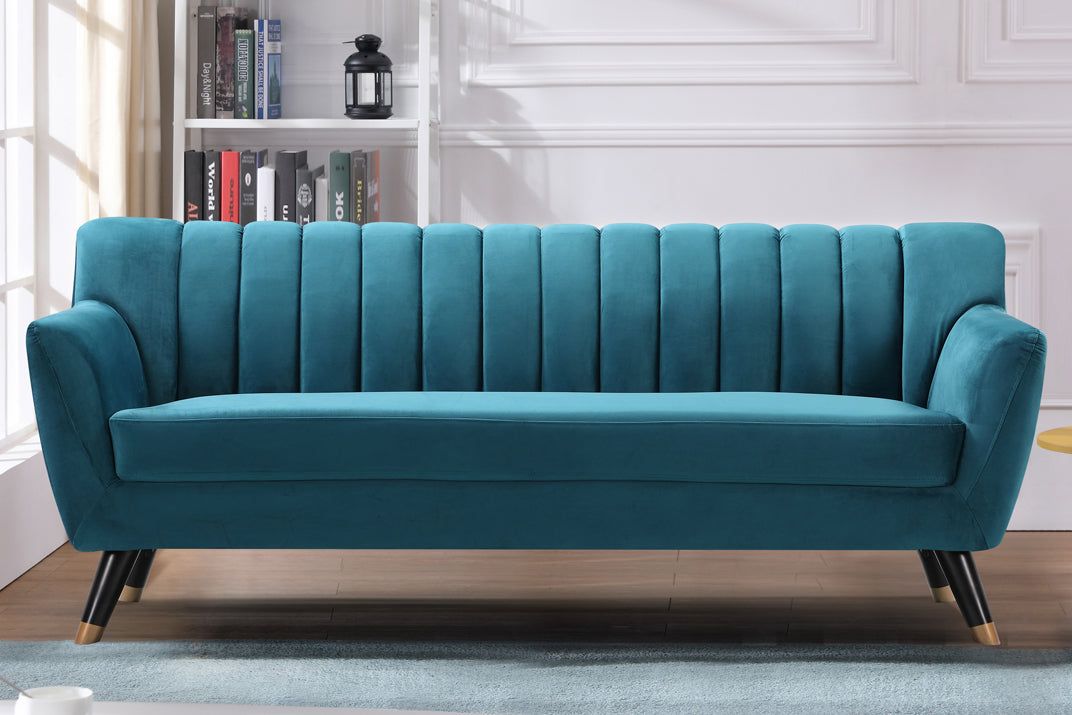 3 Seater Sofa - VIVENTO Velvet Fabric Sofa - Teal