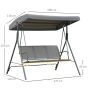 3 Seater Swing Chair Garden Swing Seat Outdoor Hammock w/ Canopy Steel Frame - Grey