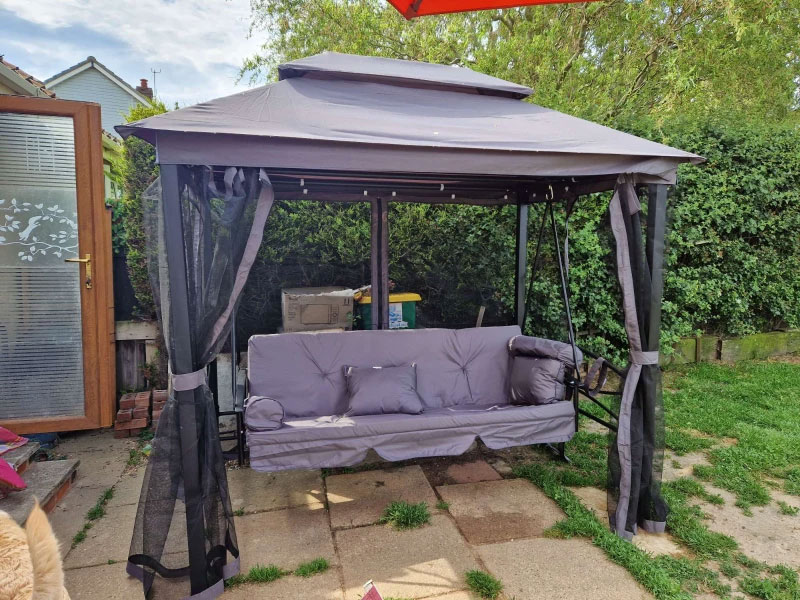 - Garden Swing Bench Overall dimension: 256L x 172W x 248H cm. Weight Capacity: 300 kg. Assembly required.