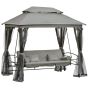 3 Seater Swing Chair Hammock Gazebo Patio Bench Outdoor with Double Tier Canopy, Cushioned Seat, Mesh Sidewalls, Grey