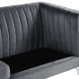 Made in pleasant-to-the-touch polyester velvet, this tuxedo style sofa features generous sitting space on its deep and thickly padded seat. The decorative acrylic legs and accent quilting enhance the classic look with mid-century charm. The 3-seater is a perfect centrepiece for any modern or traditional interior setting. Details: Color: Grey, Transparent. Main material: Velvet. Additional material: Eucalyptus Wood, Acrylic. Material Composition: 100% Polyester Weight: 50 Capacity: 3 People Assembly: Legs to be Fitted Wood type: Eucalypteae Wood Origin: China Legs Height: 12 Padding Thickness: 16 Seat Height: 41