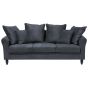 This sofa is a true stand-out piece for any modern or glam interior. Upholstered in soft-to-the-touch grey polyester velvet, this 3 seater features a multiple-cushion seat filled with fluffy and lightweight foam. The backrest consists of six cushions which add a retro appeal to the sofa. Together with round arms and profiled black legs made from eucalyptus, the sofa creates an inviting area for social get-togethers. Details: Color: Grey, Black. Main material: Velvet. Additional material: Plywood, Eucalyptus Wood. Material Composition: 100% Polyester Weight: 43 Capacity: 3 People Assembly: Partial Assembly Required Wood type: Eucalyptus deglupta Wood Origin: China Cushions Dimensions: 55x55/40x40 Legs Height: 13 Padding Thickness: 13 Seat Height: 44