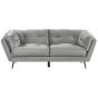 Luxurious sofa with decorative tufting is a stylish addition to any glam, retro or modern living room. Thickly padded seating cushions provide a comfortable place to sit for three when back and arm ones provide support for the whole body when relaxing. Thanks to thin but sturdy high metal legs the sofa doesn't clutter the space. Details: Color: Grey. Main material: Velvet. Additional material: Metal, Eucalyptus Wood. Material Composition: 100% Polyester Weight: 50 Capacity: 3 People Assembly: Legs to be Fitted Wood type: Eucalypteae Wood Origin: China Legs Height: 16 Padding Thickness: 22 Seat Height: 50