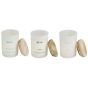 Unwind in the embrace of nature's serenity with this trio of soy wax candles. These exquisite creations, encased in chic white glass with wooden covers, exude elegance. Each candle burns for up to 45 hours, infusing your space with the essence of the great outdoors. Let the scents of nature's beauty envelop you. Details: Color: White, Light Wood. Main material: Soy Wax. Additional material: Glass, Cotton.