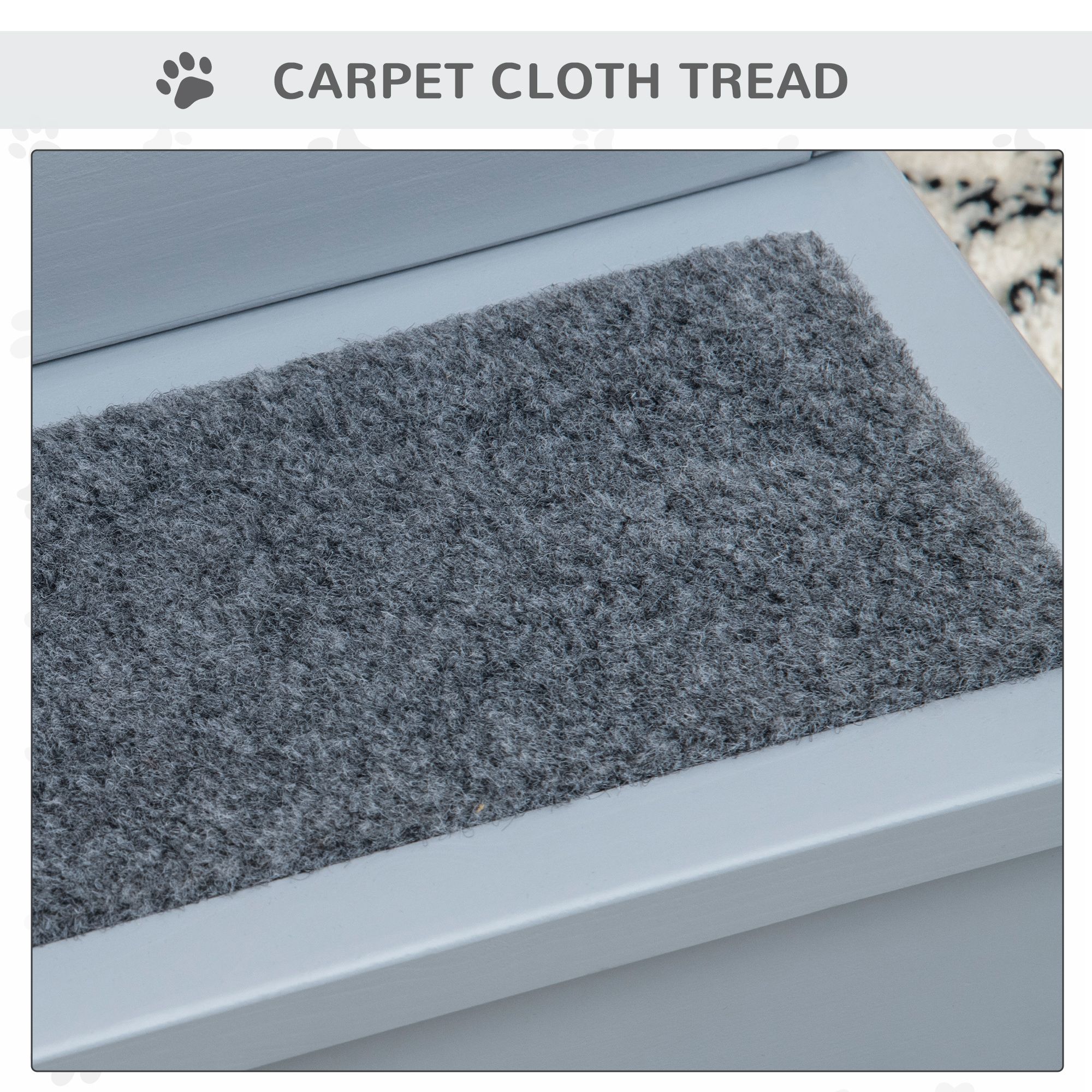 3 Step Wooden Pet Stairs Steps Dog Stairs Carpet Non Slip Grey