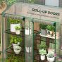 No more worrying about your carefully kept plants and flowers freezing! Outsunny provides a mini greenhouse with a three-tier flower stand that offers a spacious solution for gardeners of all levels. Plastic cover with two roll-up doors create a desirable temperature and humidity for plants to grow. A pent roof to prevent water accumulation. Embrace the art of horticulture with the Outsunny mini greenhouse.