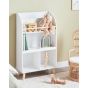 Add a touch of charm to your little one's room with this charming 3-tier bookshelf. Crafted from durable MDF for easy cleaning, with sturdy pine wood legs and rods for added stability, it's both practical and stylish. It offers plenty of space to store and display books, toys, and accessories, while its simple design and classic white colour make it a perfect fit for any interior.