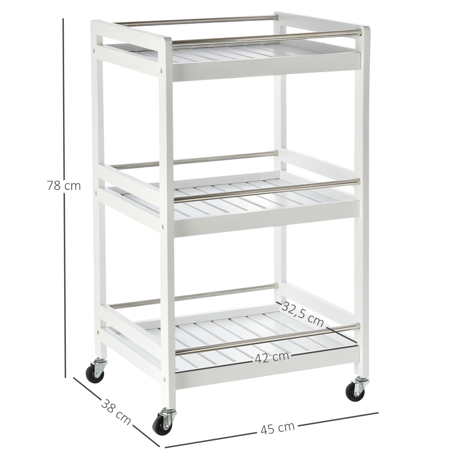 3-Tier Home Trolley Kitchen Storage w/ Steel Bars 4 Wheels Rolling Unit Organiser Living Room White