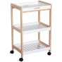 Whether you need this for your home, café, restaurant or pub, this four-wheel serving trolley is perfect for helping you move items easily. In a three-tier design, it has plenty of space, making it very easy for you to move multiple things together. Four smooth rolling casters ensure it is easy to push and pull, with two locking brakes so it doesn’t move and will stay stationery if needs be. Made from MDF, the shelves are easy to clean and complement the strong and durable natural pine wood frame for a stylish addition to all style environments.