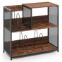 3-Tier Record Player Stand with Vinyl Storage and 3 Removable Dividers-Brown