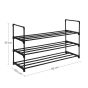 Always wasting time looking for the right shoes in a big, messy pile?Hopping around on one leg to put on your shoes before heading out?This 3-tier shoe rack is the answer you're seeking! Rescue your shoes from the piles and provide them with a handy perch. Here are what you can benefit from this metal shoe rack:Quality: The metal frame and quality plastic connectors give this shoe organiser a sturdy, stable structure that supports up to 5 kg per tier.Storage: You can maximise your space by taming your sneakers, flats, and boots on this shoe rack. Holding about 12-15 pairs of shoes, it takes little floor space.Simplicity: With a straightforward design, this metal shoe rack will fit perfectly into your space. Also, the customisable design and easy assembly save your time and energy.