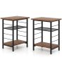 3-Tier Side Table with Height Adjustable Metal Mesh Shelf-Rustic Brown
