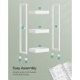 This 3-tier slim storage trolley in white offers a versatile and space-saving storage solution. With its slim design, it fits neatly into tight spaces, making it ideal for bathrooms, kitchens, or utility rooms. The three tiers provide ample space for organizing toiletries, kitchen supplies, or laundry essentials. Crafted from durable materials, this trolley is both functional and stylish, helping you stay organized in any room.