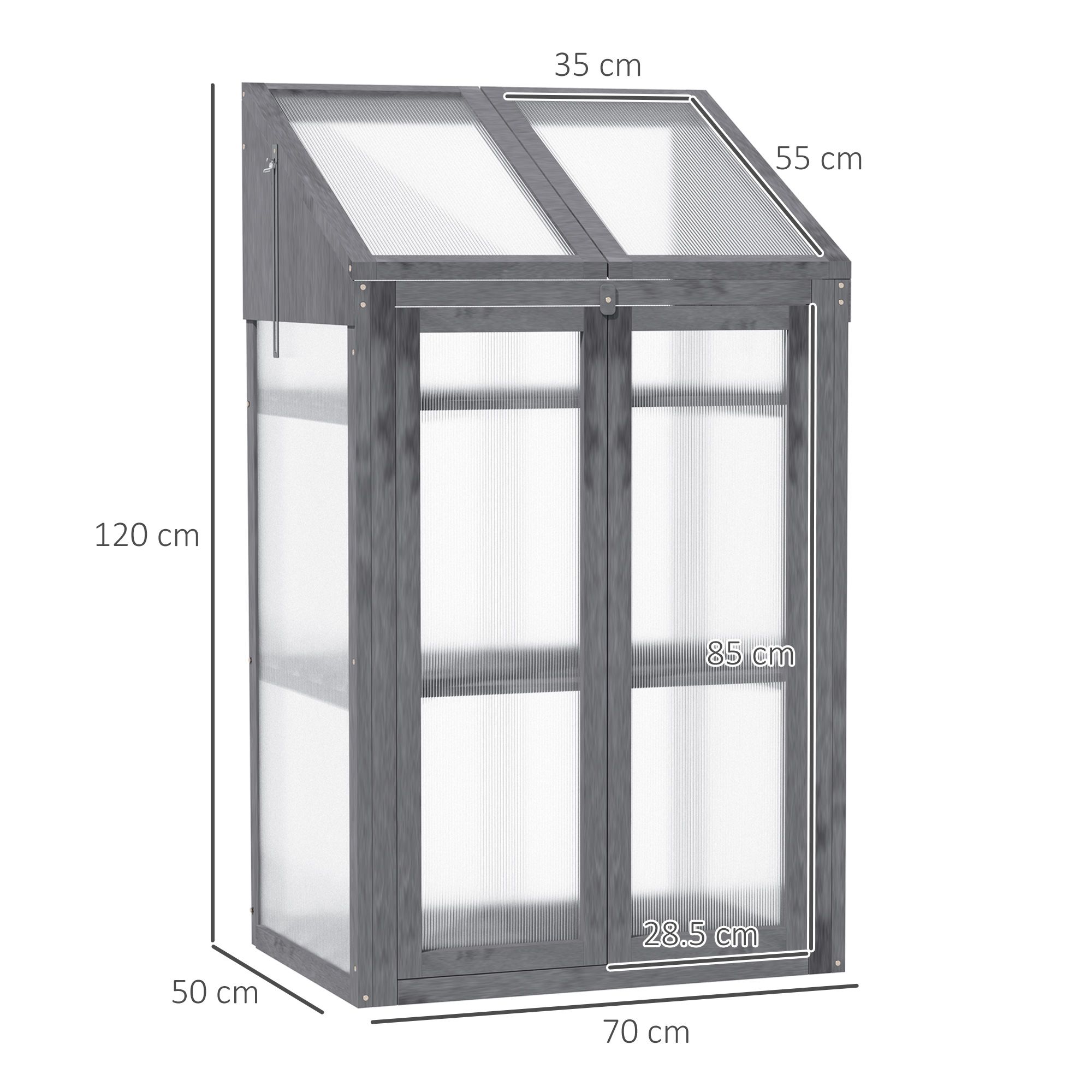 3-Tier Wooden Cold Frame Greenhouse Garden Grow House w/ Polycarbonate Glazing, Openable Lid, 70 x 50 x 120 cm, Grey