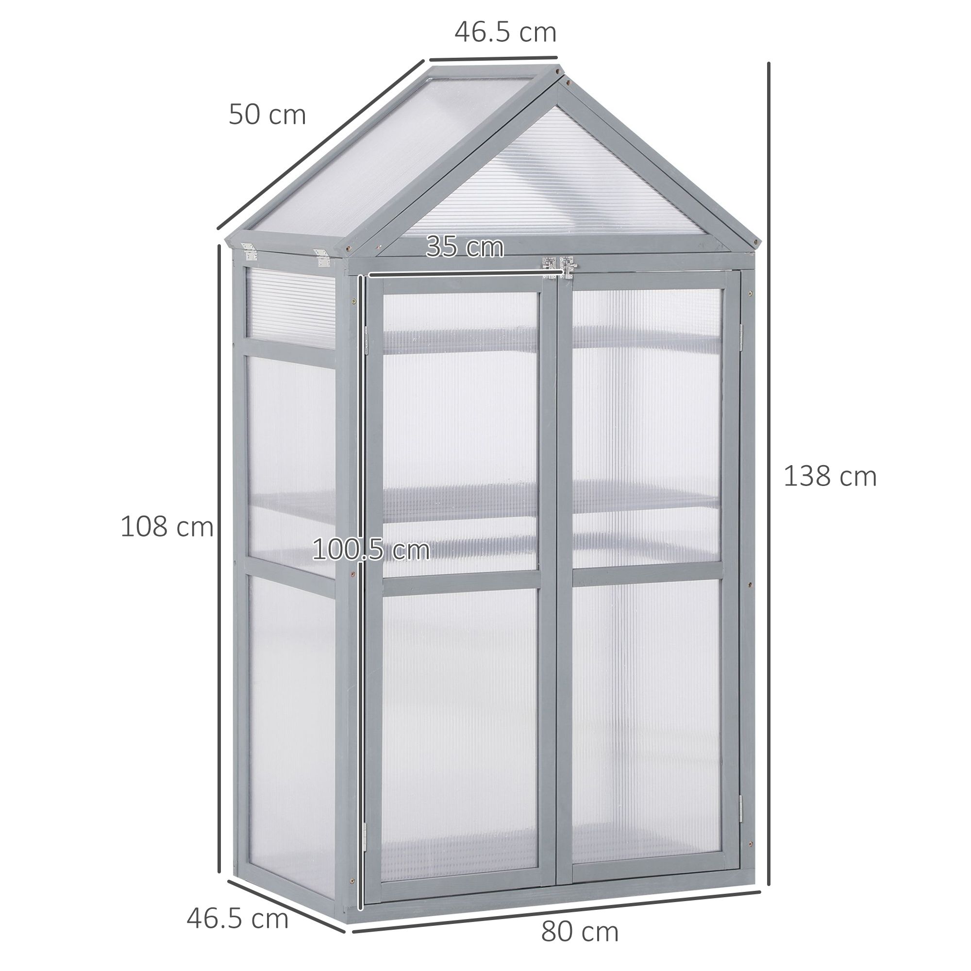 3-Tier Wooden Cold Frame Greenhouse Garden Polycarbonate Grow House w/ Adjustable Shelves, Double Doors, 80 x 47 x 138cm, Grey