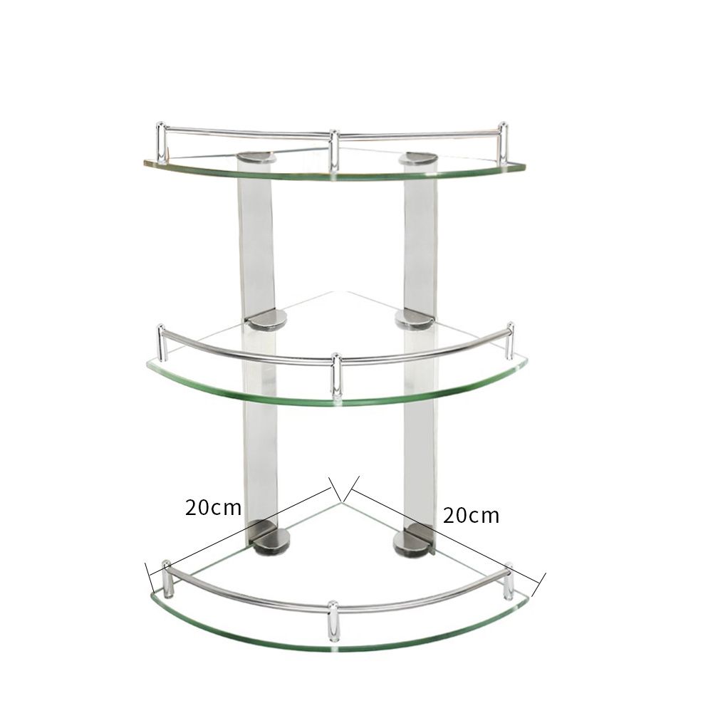 3 Tiers Bathroom Tempered Glass Corner Shelf With Steel Rail Wall Mounted