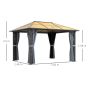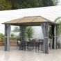 3 x 3.6m Garden Aluminium Gazebo Hardtop Roof Canopy Marquee Party Tent Patio with Mesh Curtains & Side Walls - Grey